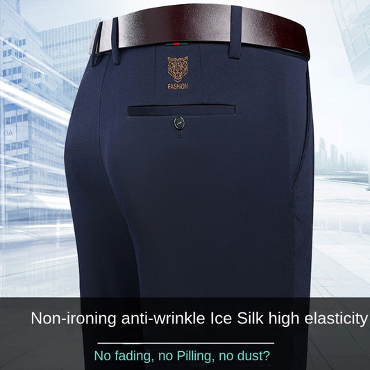 Pantaloni casual pentru bărbați cu talie înaltă și picior drept