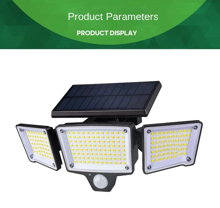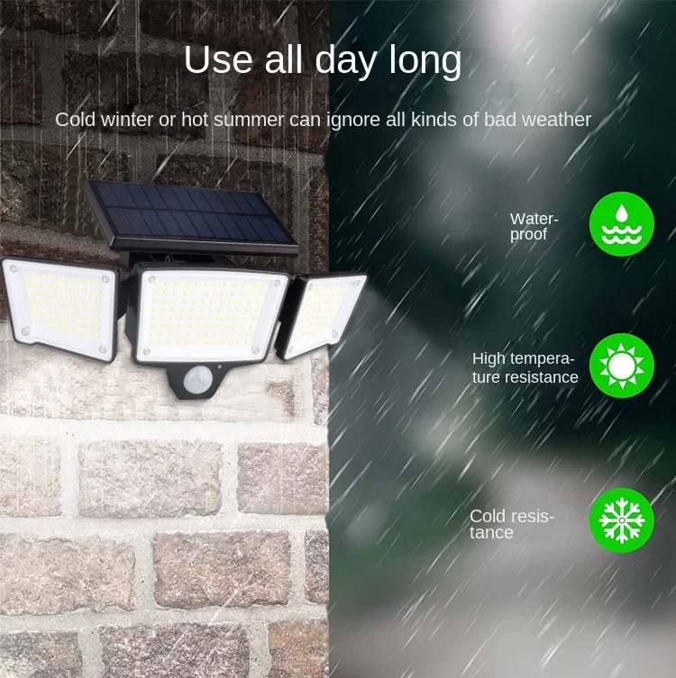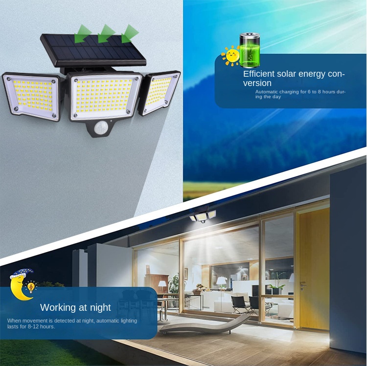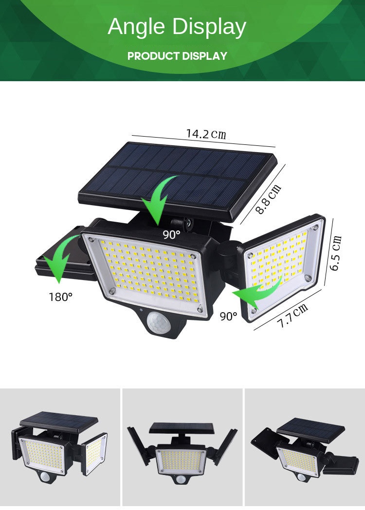 Lampă solară de perete cu trei capete rotativă cu senzor infraroșu Lampă LED în aer liber pentru curte Lampă pentru garajLampă solară de perete cu trei capete rotativă cu senzor infraroșu Lampă LED în aer liber pentru curte Lampă pentru garaj