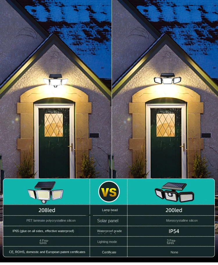 Lampă solară de perete cu trei capete rotativă cu senzor infraroșu Lampă LED în aer liber pentru curte Lampă pentru garajLampă solară de perete cu trei capete rotativă cu senzor infraroșu Lampă