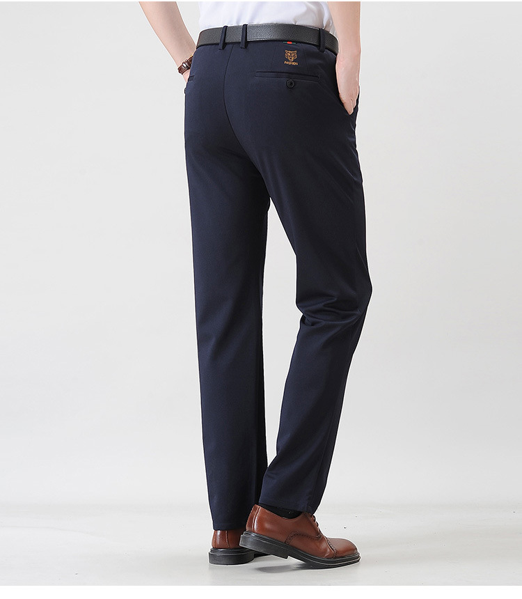 Pantaloni casual pentru bărbați cu talie înaltă și picior drept